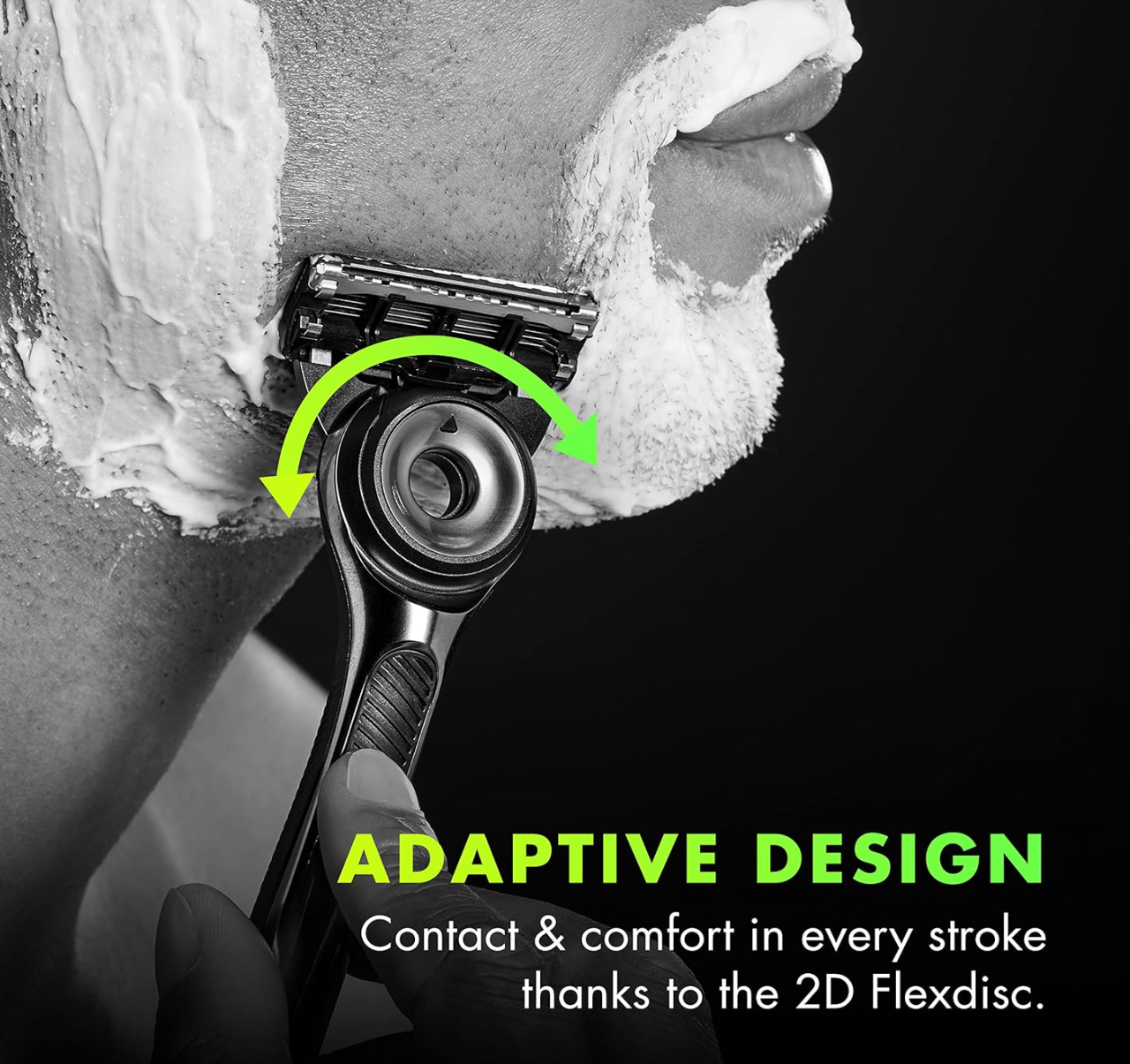 - Adaptive design: 2D FlexDisc contours to your face to ensure comfort and contact with every stroke