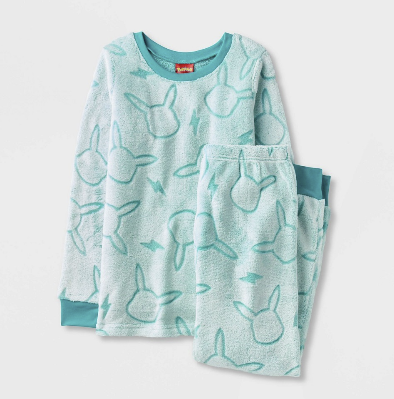 Your child will look cute in this 2-Piece Pokémon Pikachu Gifting Pajama Set. This pajama set includes a long-sleeve sleep shirt and pajama pants, both crafted from soft fabric for all-night comfort. Plus, these pieces are designed with ribbed cuffs and ribbed ankles for a snug fit and neat finish. Designed in a green hue, the top and bottom feature allover Pikachu face silhouettes in dark green to excite your Pokémon fan. Best of all, the set comes in a beautiful package tied with a semi-sheer white ribbon with silver trim, making it a perfect holiday gift for your child or other kids.