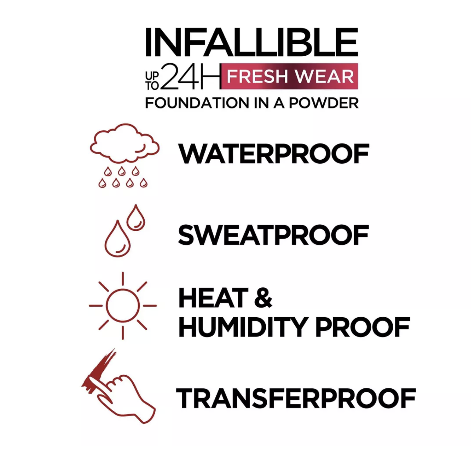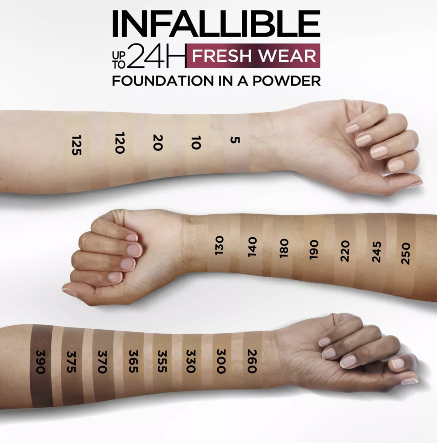 L'Oréal Paris' Infallible 24H Fresh Wear Foundation In A Powder covers like a liquid and mattifies like a powder with no cakey look.