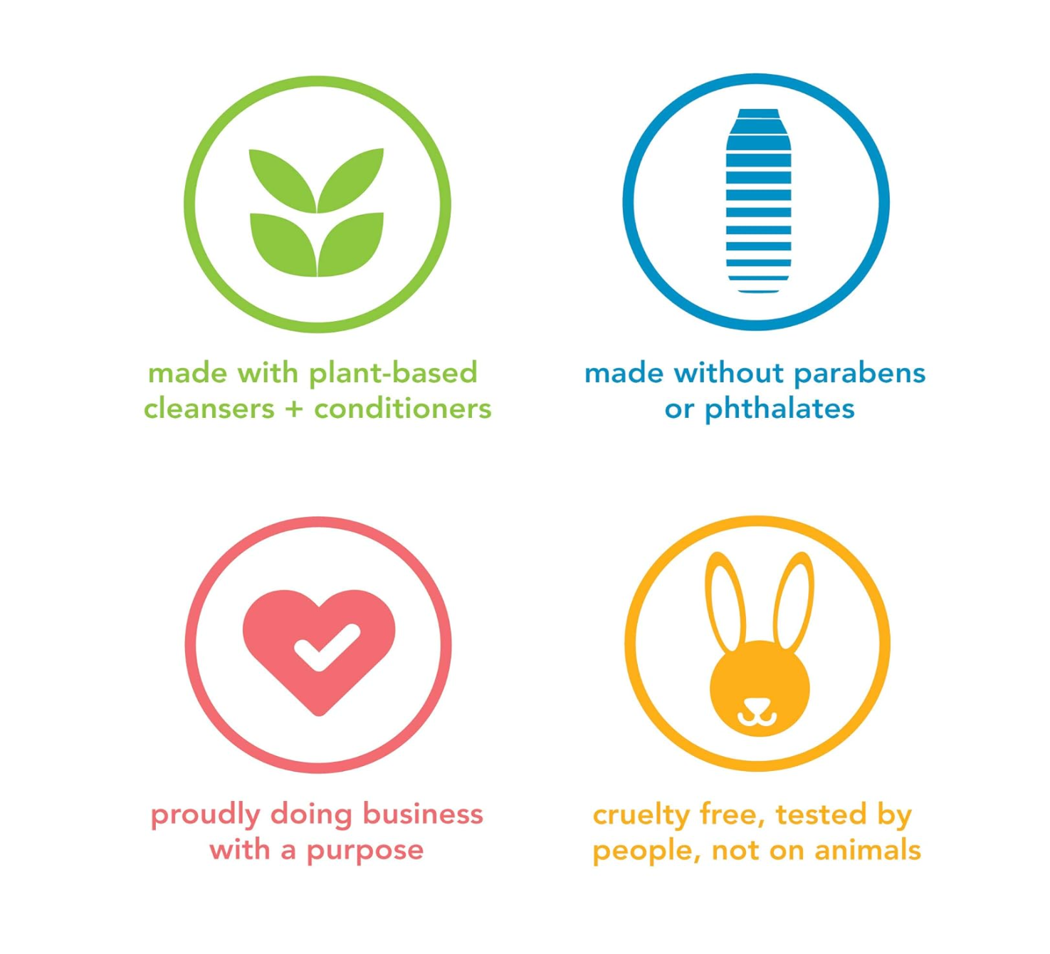 - Combined shampoo + conditioner with plant-based cleansers and conditioners.