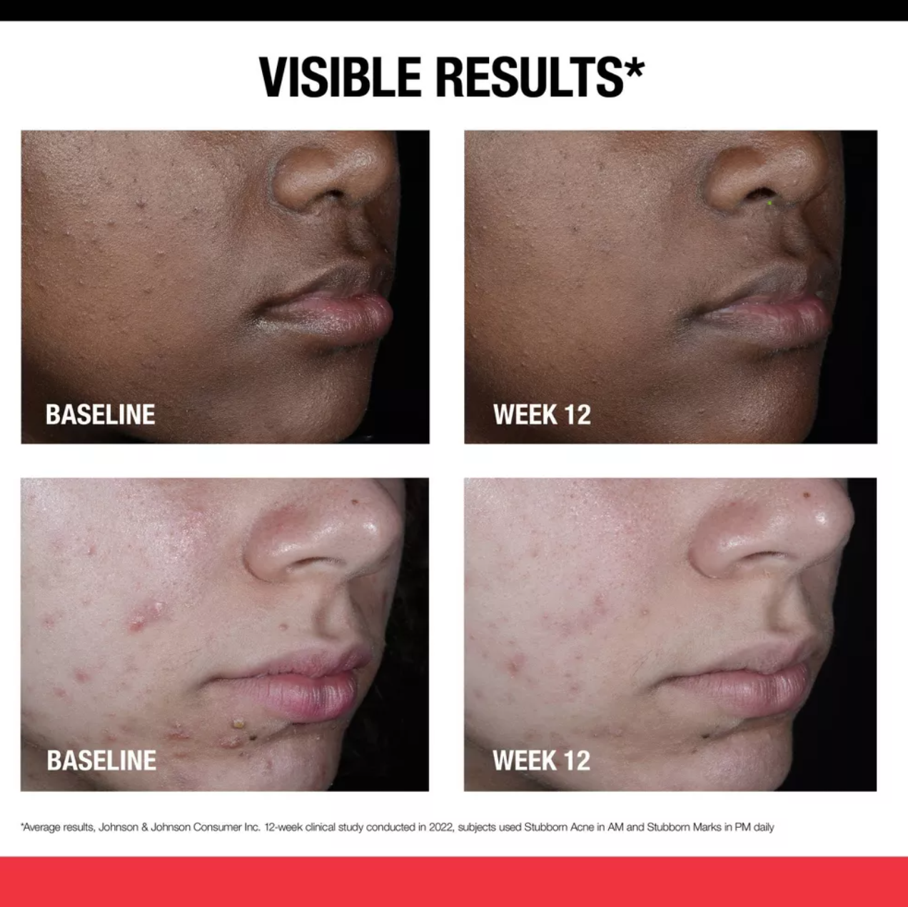 Visibly correct uneven skin tone and help reverse the look of post-acne marks with Neutrogena Stubborn Marks PM Treatment. From a dermatologist-recommended acne brand, this nighttime, dermatologist tested treatment supports skin's natural exfoliation process and complements cell turnover while you sleep. This nighttime treatment helps reverse the look of post-acne skin marks, improves clarity and evens skin tone. The clinically proven formula contains retinol SA, a stabilized form of vitamin A that helps visibly correct your complexion, so acne marks look less noticeable. The daily treatment formula is oil-, paraben-, phthalate-, dye- and fragrance-free. For best results, use the Neutrogena Stubborn Marks PM Treatment along with the Neutrogena Stubborn Acne AM Treatment as part of a dermatologist-recommended daily regimen for clear skin. The retinol helps clear a path for the benzoyl peroxide in the AM formula to effectively target acne-causing bacteria.