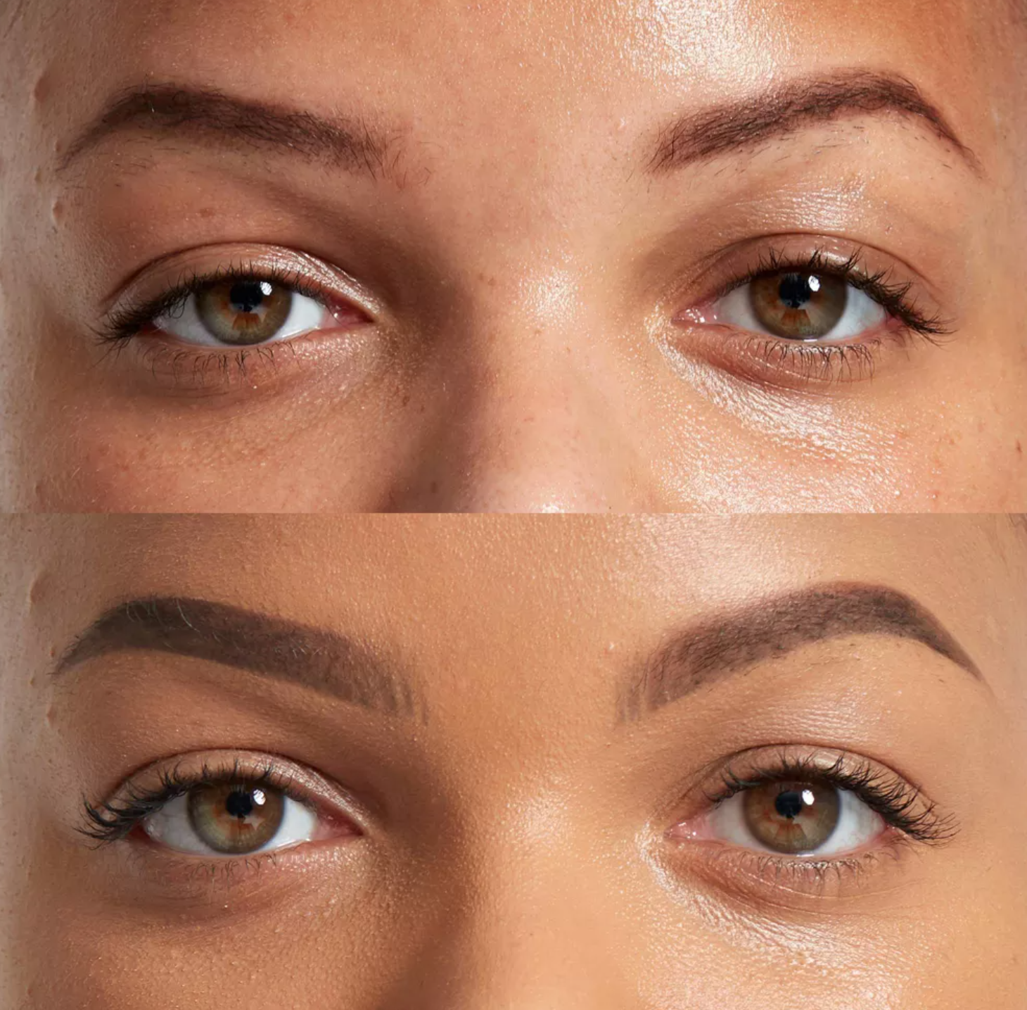 • This dual-ended brow pencil has a flat tip for outlining your arches & filling them in with detailed, hair-like strokes AND a flexible spoolie-brush for seamless blending and getting your eyebrows into place
