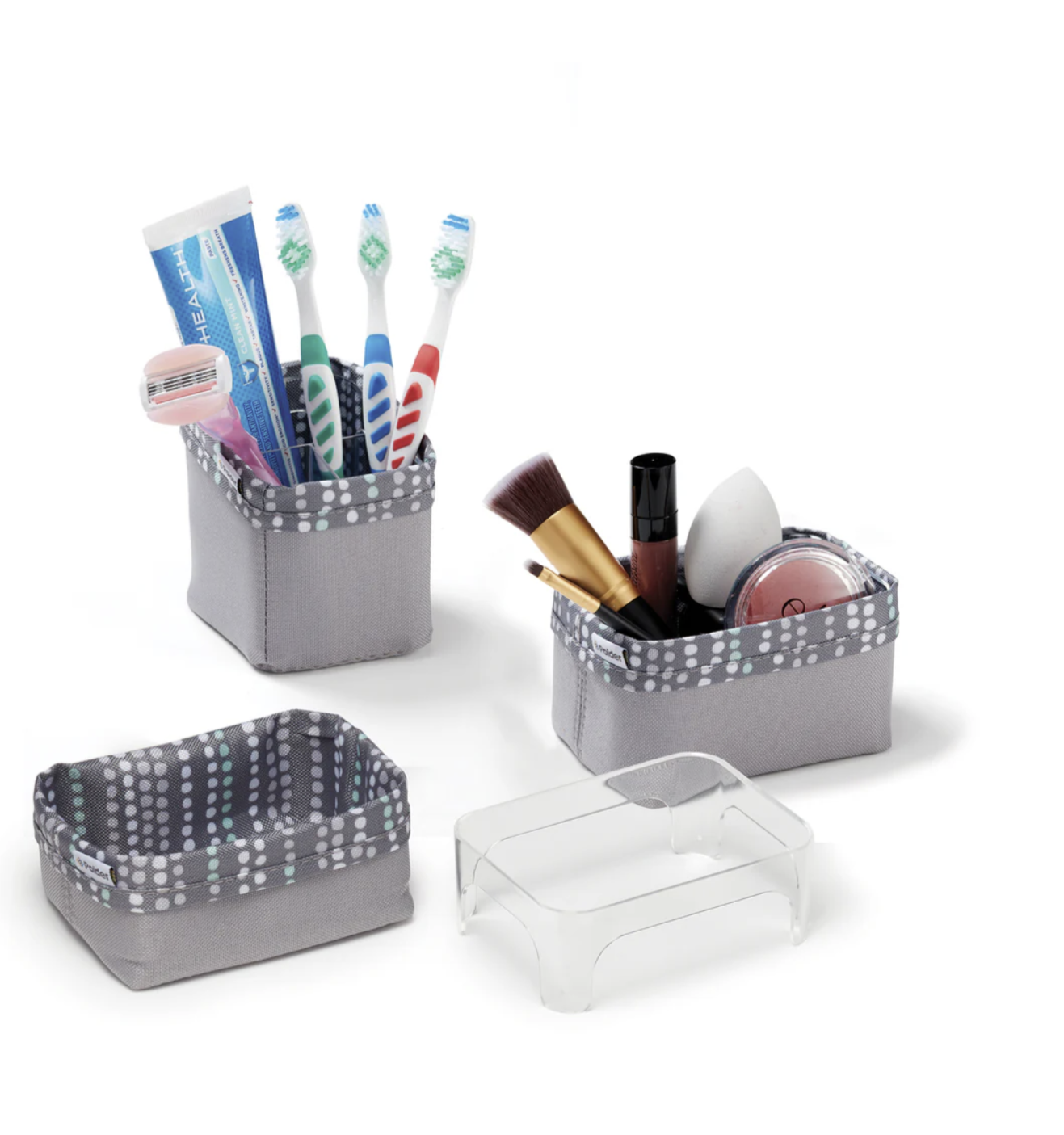 - 3-piece set offers a variety of storage solutions for medicine cabinets or countertops