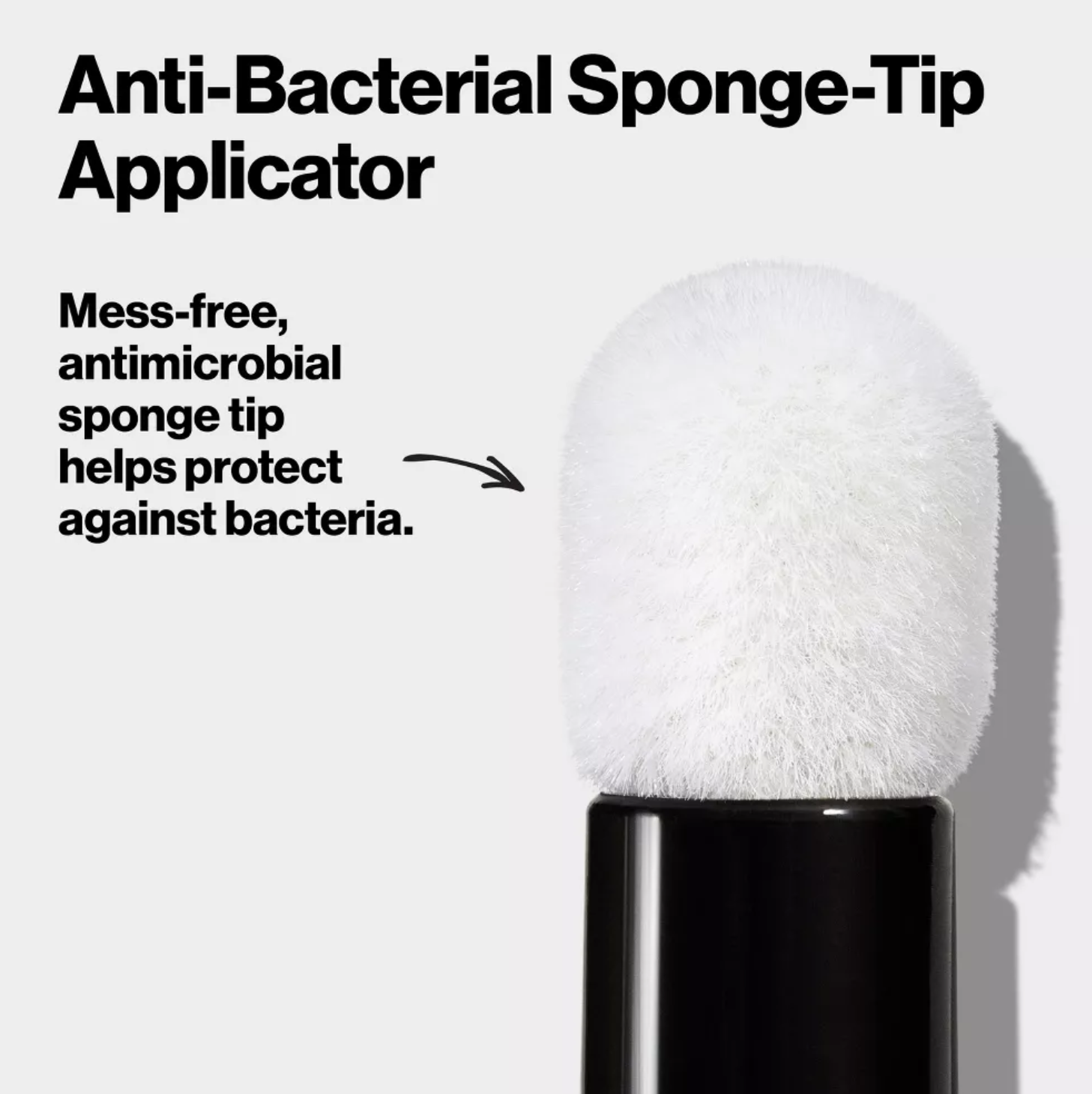 Using the mess-free antibacterial sponge tip applicator, dab on the multitasking, long-wearing concealer. Dot concealer onto dark circles, starting under the inner corners of your eyes. Blend out lightly with your ring finger (avoid using your pointer, because it’s easy to apply too much pressure and smear concealer). Apply in a gentle patting motion, build until you have desired coverage. Now, move on to any imperfections and dark spots, and just dot and gently blend
