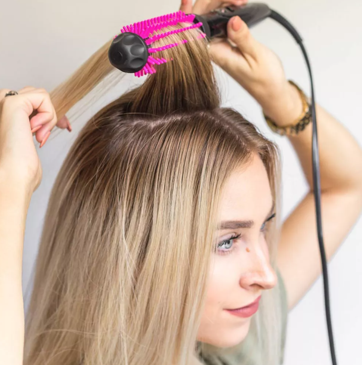 Get salon hair volume at home with this innovative hot hair brush with soft, flexible, and cool-to-the-touch silicone hair brush bristles. With better grip and shiny results, these bristles stay cool-to-the-touch and are kinder to your hair, allowing you to get close to the scalp for beautiful volume at the roots. Create long-lasting results and fast hairstyling with professional 430° F High Heat and 2 Heat Settings that make it ideal for styling all hair types. The unique silicone bristles of this round brush help eliminate kinks and control flyways, while creating volume. Enjoy 430° (F) Professional High Heat for fast hairstyling and optimal results. This versatile hairstyling hot brush is a must-have for everyday styling.