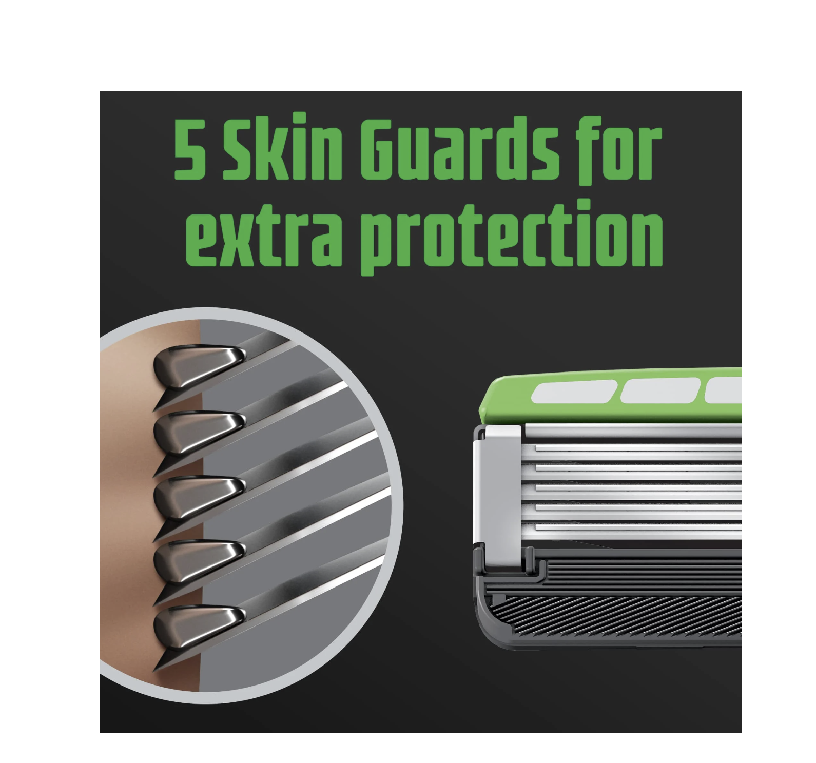 - These men’s razors feature 5 blades with Skin Guards on every blade for extra protection against irritation.
